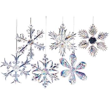 This Kurt Adler 12-Piece 2" Glass Iridescent Snowflake Glass Ornament set is a beautiful, classic way to add to the décor of your Christmas tree. Each small snowflake is textured and clear, and has a different intricate, beautiful design.
